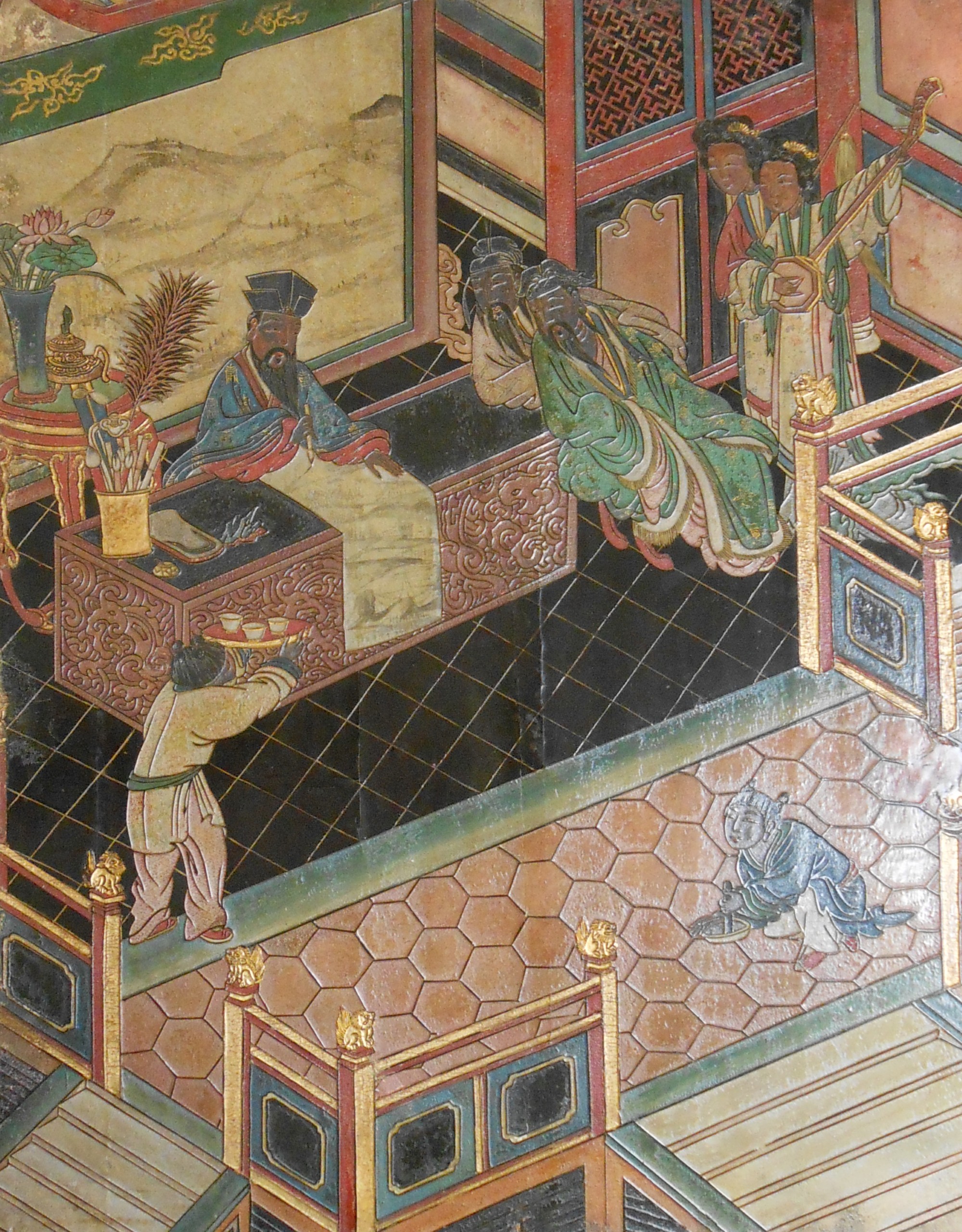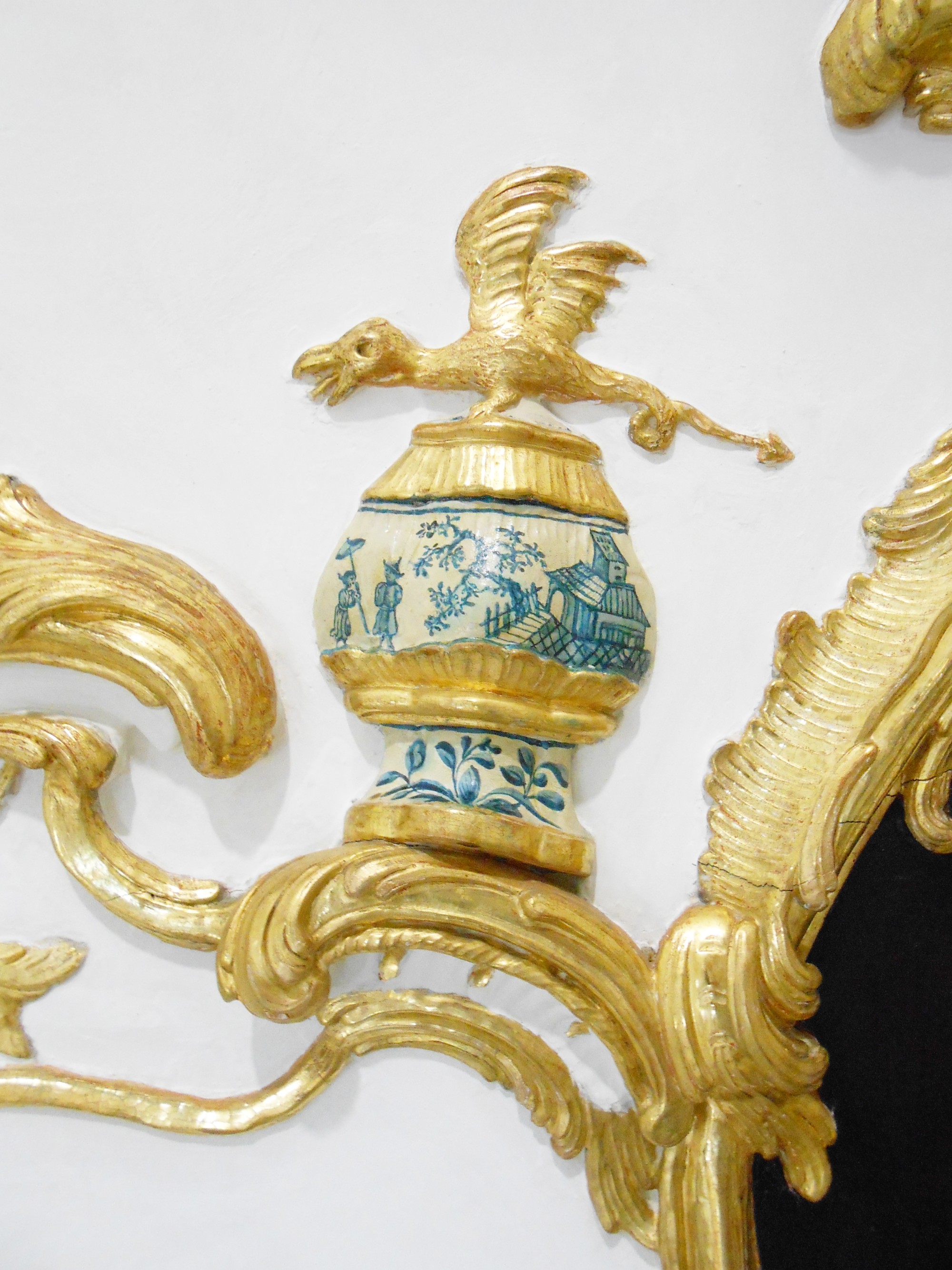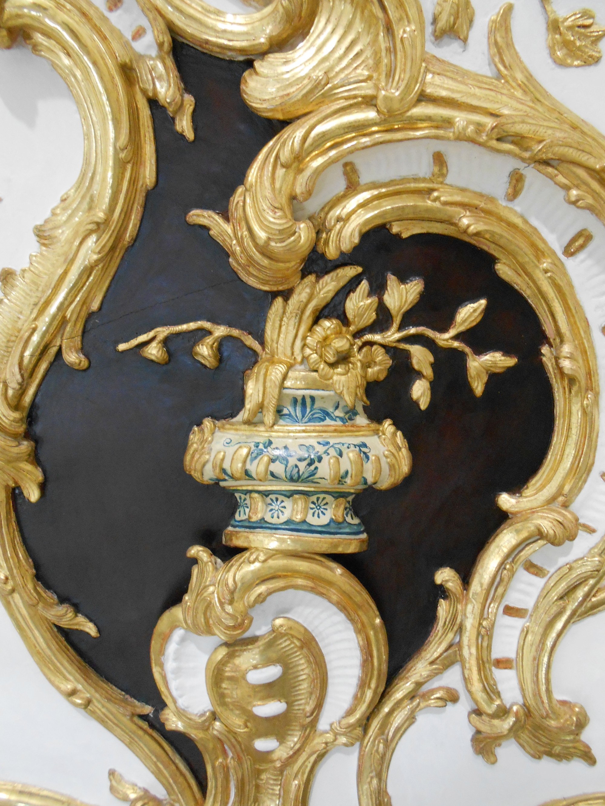 PROJEKTBESCHREIBUNG | Die Restaurierung der chinesischen Kabinette erfolgte im Zusammenhang mit dem FWF-Forschungsprojekt "Ostasiatische Raumausstattungen in Schloss Schönbrunn" mit der Zielsetzung der Erforschung von Objekt- und Restaurierungsgeschichte, Bestand- und Schadensdokumentation sowie die Entwicklung eines neuen Montagekonzepts der wandgebundenen Keramik. Zusätzlich betroffen waren die in die Wandvertäfelung eingebundenen chinesischen und japanischen Lacktafeln. Die Untersuchungen führten zu den Definitionen der Restaurierziele und bildeten die Grundlage zur weiteren Bearbeitung. Die Restaurierung der Weißgold- Wandvertäfelung sowie der Stuckdecke wurde entsprechend der definierten Restaurierziele umgesetzt. Die Metallapplikationen an Luster und Wandappliken in Form von Blütenblättern wurden getreu dem historischen Vorbild rekonstruiert.