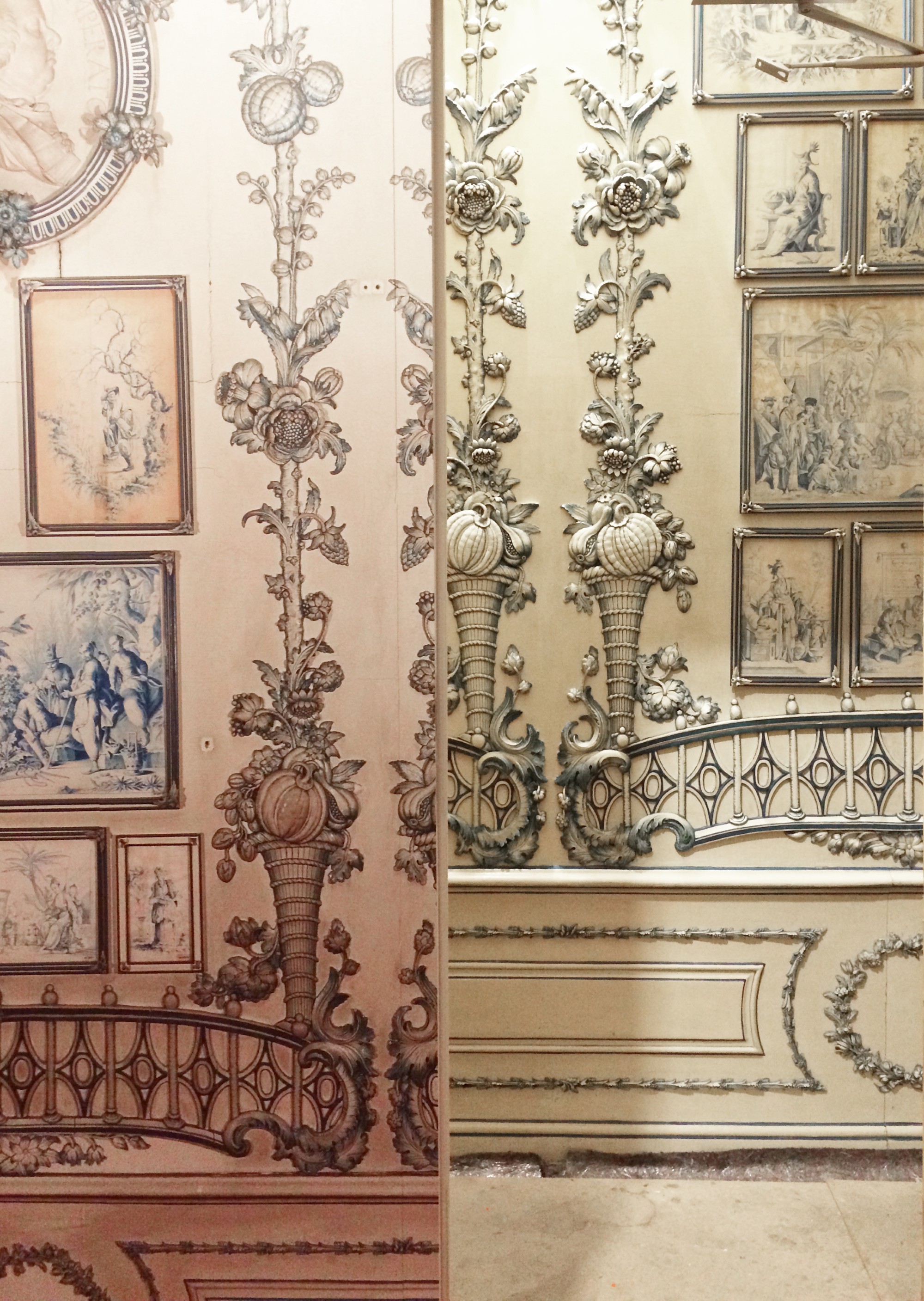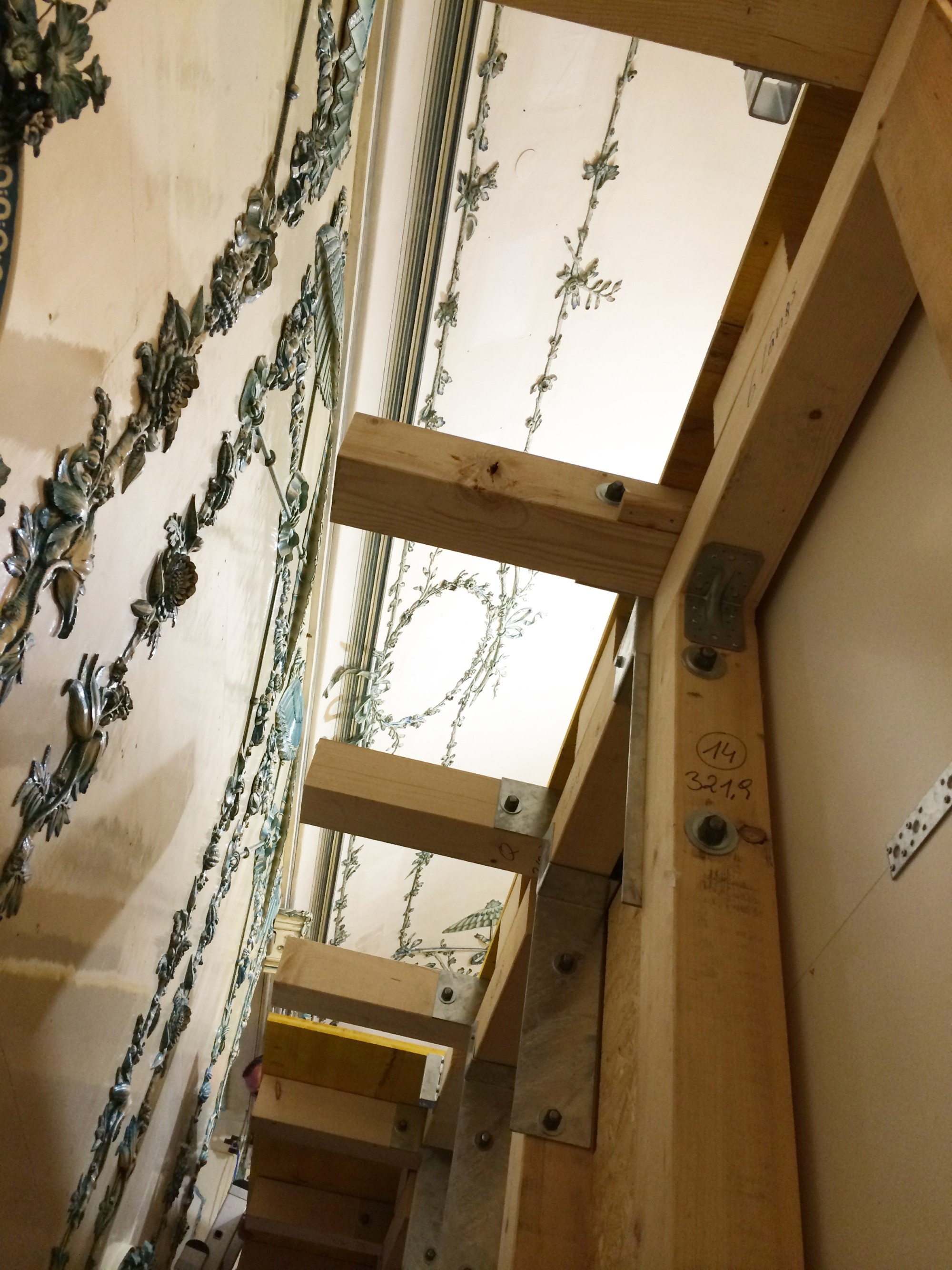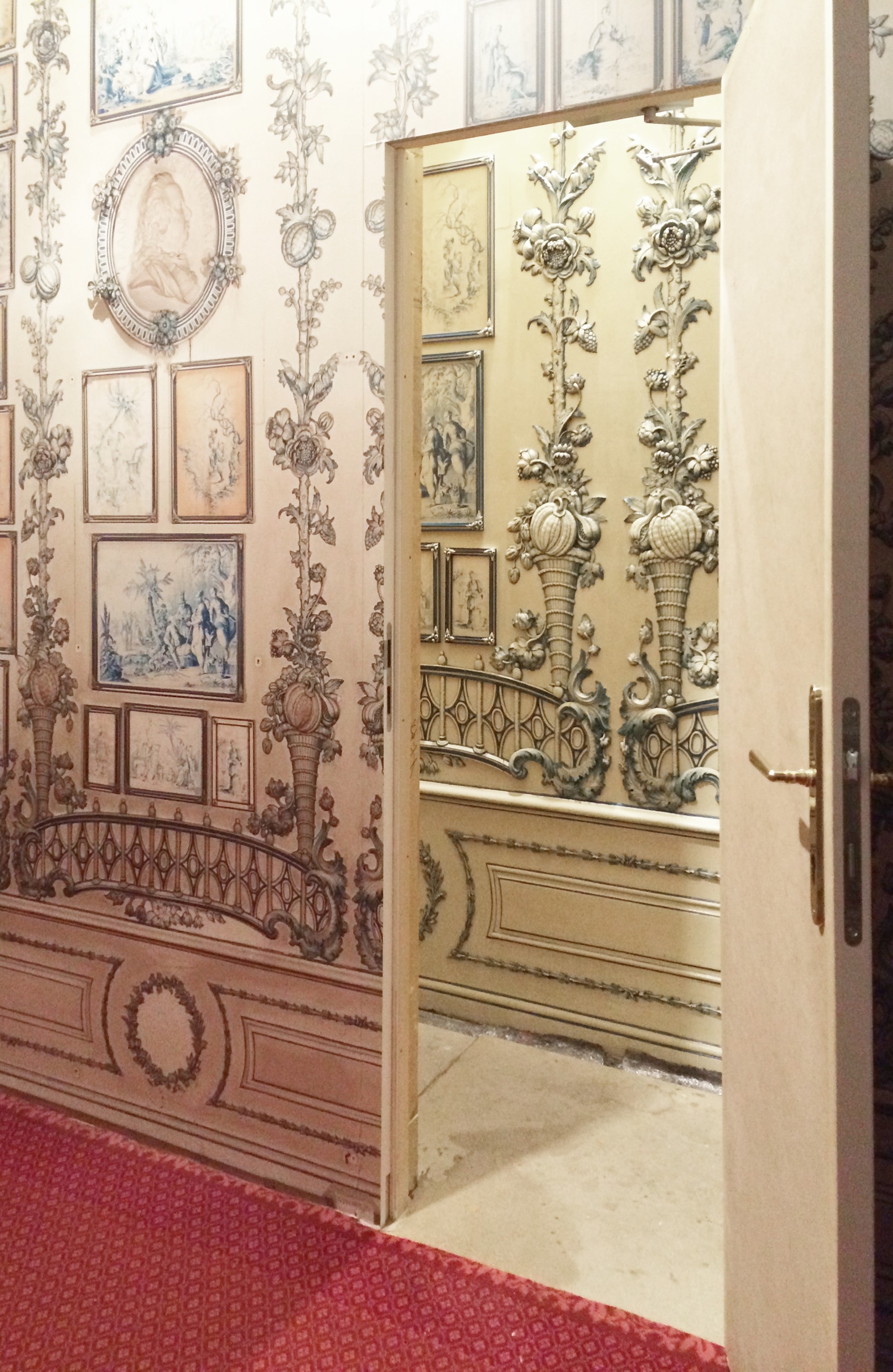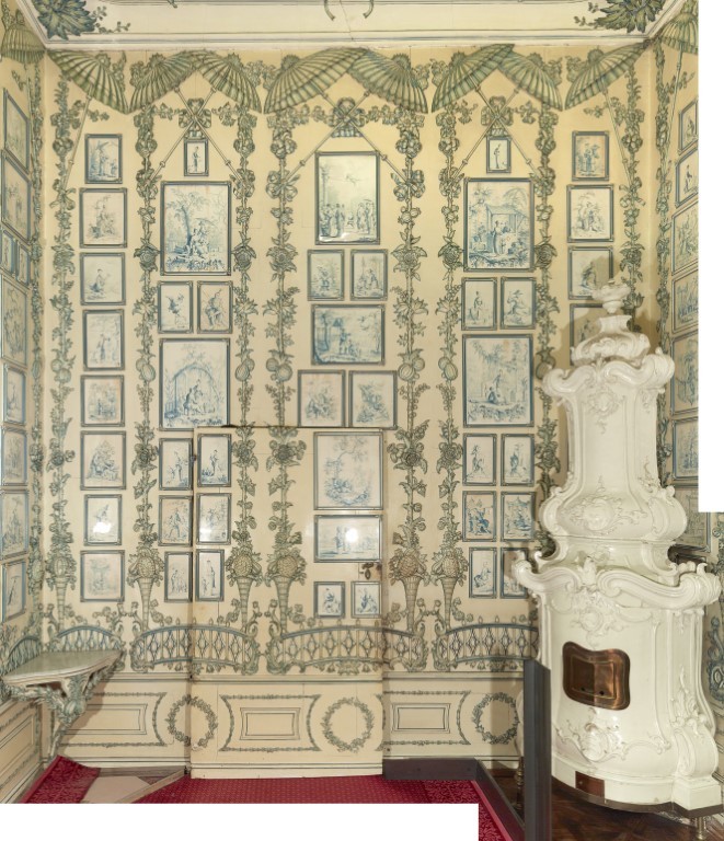 PROJEKTBESCHREIBUNG | Das Porzellanzimmer war, wie die chinesischen Kabinette, Bestandteil des FWF-Projekts "Ostasiatische Raumausstattungen in Schloss Schönbrunn". Ein besonderes Ausstattungsmerkmal des Zimmers sind Gouachemalereien aus dem familiären Umfeld von Maria Theresia. Die Polierweißfassung der Wandvertäfelungen wurde gereinigt, konsolidiert und gegebenenfalls ergänzt. Die geringen Raumabmessungen erforderten eine spezielle Einhausung, die gleichzeitig als Gerüst für die Restaurierung verwendet werden konnte. Die Applizierung der fotorealistischen Abbildungen an der Publikumsseite der Einhausung ermöglichte die Erfassung des Raumes.
