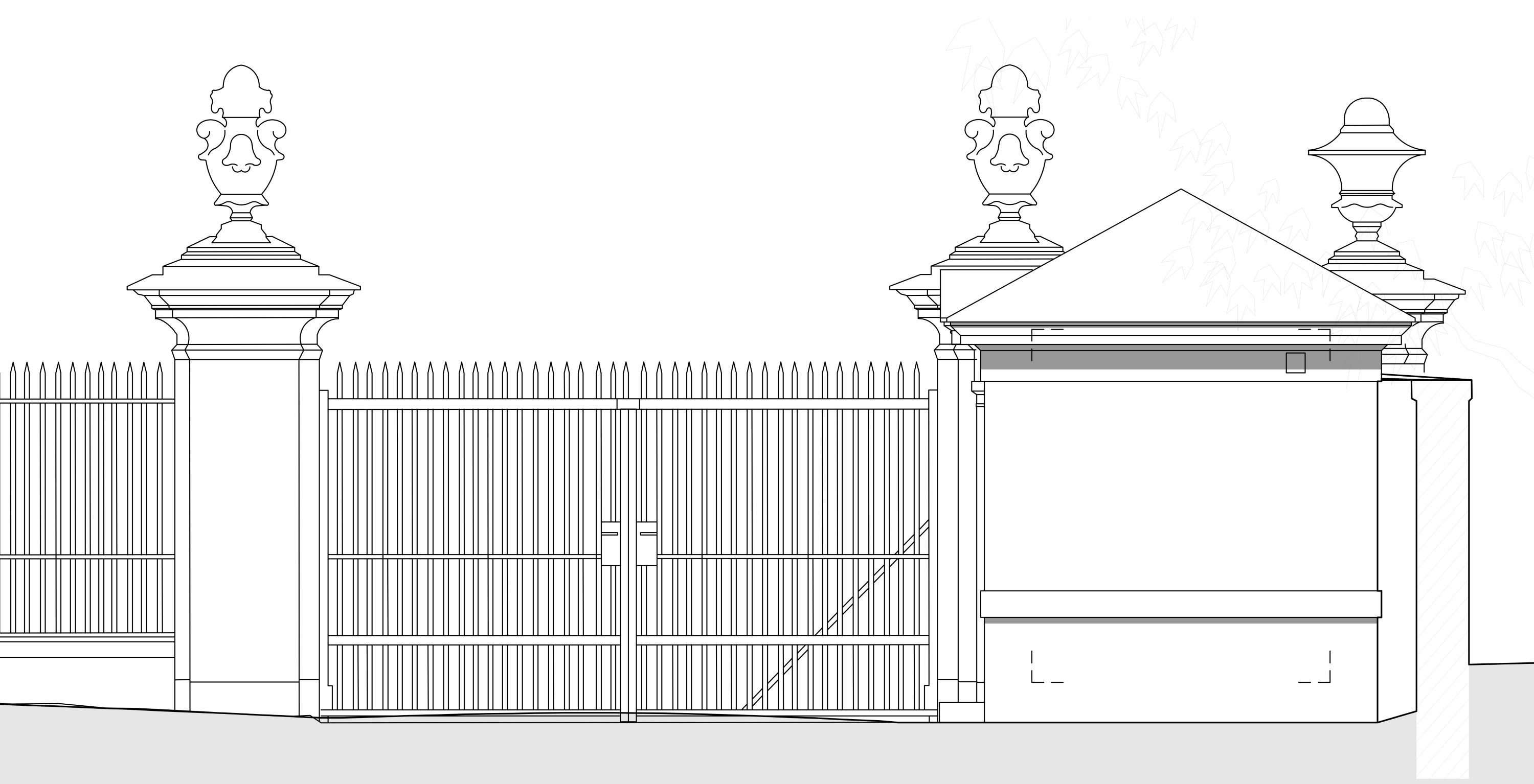 PROJEKTBESCHREIBUNG | Das Engelstor nächst dem öffentlichen Verkehrsknoten Kennedybrücke soll zur Verbesserung des fußläufigen Zugangs zum Schlosspark Schönbrunn geöffnet werden. Sicherheitsrelevante Aspekte bzw. Überwachung des Eingangsbereichs machen die Errichtung einer Portierloge notwendig. Nach umfangreichen Besprechungen und auf Grundlage zahlreicher Entwürfe wurde die Positionierung innerhalb der Schlossparkmauer und die Rekonstruktion eines Gebäudes aufgrund historischer Fotografien beschlossen. Der erarbeitete Entwurf bildet die ehemalige „Wachstube“ nach, welche vermutlich während des Baus der Kennedybrücke abgebrochen wurde. Die Errichtung des rekonstruierten Gebäudes wird im Jahr 2026 erfolgen.