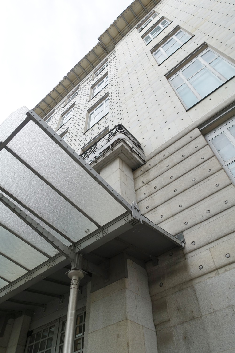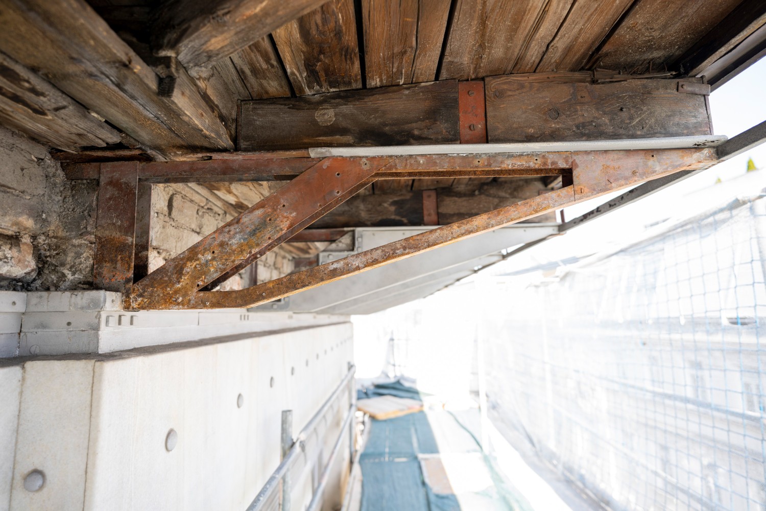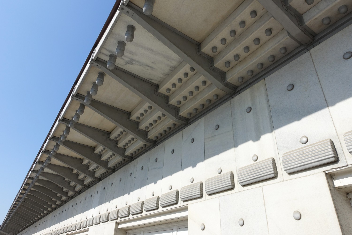 PROJEKTBESCHREIBUNG | Für die Vorbereitung eines umfassenden Sanierungsprojekts wurden umfangreiche Untersuchungen, Befundaufnahmen und ein Raumbuch mit Beschreibung aller vorhandenen Gestaltungselemente erstellt. In weiterer Folge wurden Bemusterungsarbeiten zur Definition von Restaurierzielen für die weiteren Projektphasen erstellt. Im Zuge dieser Bearbeitung wurden Korrosionsschäden an der mit Aluminiumblech verkleideten Stahlunterkonstruktion des Hauptgesimses festgestellt. Nach Entwicklung eines Demontagekonzepts der Hauptgesimskonstruktion erfolgte die Demontage der Natursteinplatten sowie der Zier- und Verkleidungselemente aus Aluminium. Somit konnten Korrosionsschäden an der Stahlkonstruktion des Gesimses begutachtet und entsprechende Sanierungsmaßnahmen durchgeführt werden.