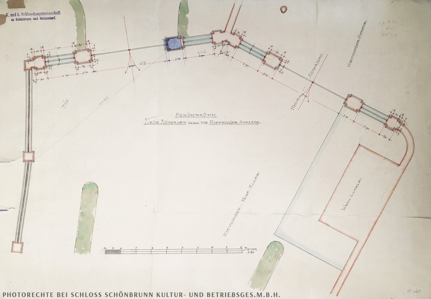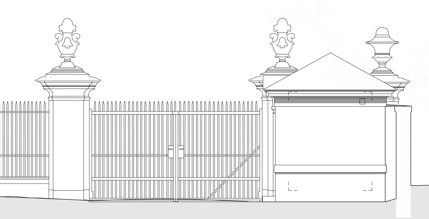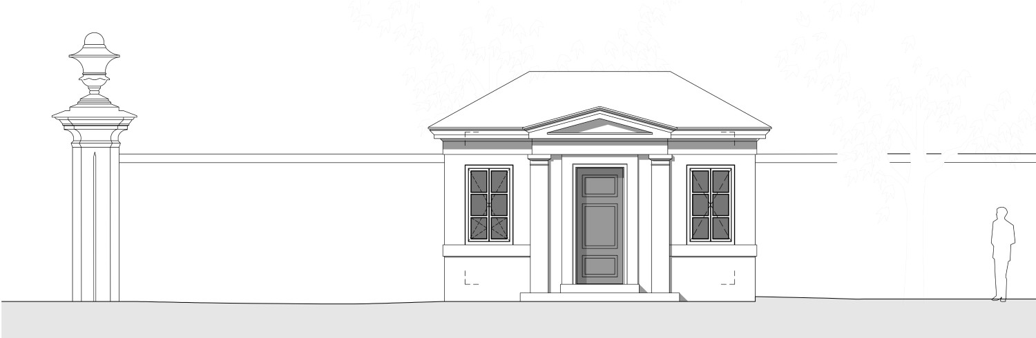 PROJEKTBESCHREIBUNG | Das Engelstor nächst dem öffentlichen Verkehrsknoten Kennedybrücke soll zur Verbesserung des fußläufigen Zugangs zum Schlosspark Schönbrunn geöffnet werden. Sicherheitsrelevante Aspekte bzw. Überwachung des Eingangsbereichs machen die Errichtung einer Portierloge notwendig. Nach umfangreichen Besprechungen und auf Grundlage zahlreicher Entwürfe wurde die Positionierung innerhalb der Schlossparkmauer und die Rekonstruktion eines Gebäudes aufgrund historischer Fotografien beschlossen. Der erarbeitete Entwurf bildet die ehemalige „Wachstube“ nach, welche vermutlich während des Baus der Kennedybrücke abgebrochen wurde. Die Errichtung des rekonstruierten Gebäudes wird im Jahr 2026 erfolgen.